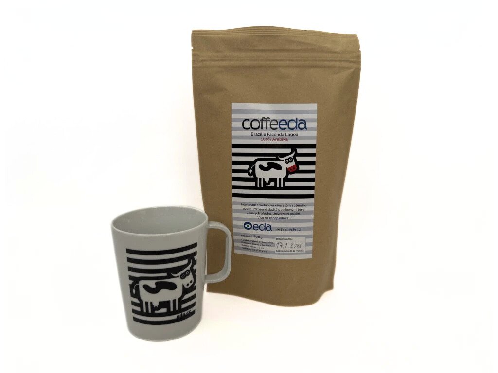 Coffeeda 200g a porcelánový hrnek české výroby s potiskem zvířátek z našich aplikací EDA PLAY.