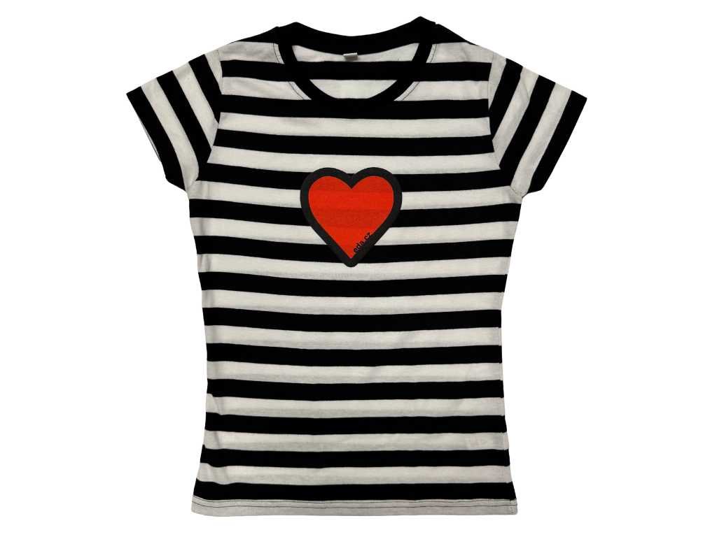 Dámské černobílé pruhované tričko s motivem srdíčka. Limitovaná edice EDA s láskou ♥