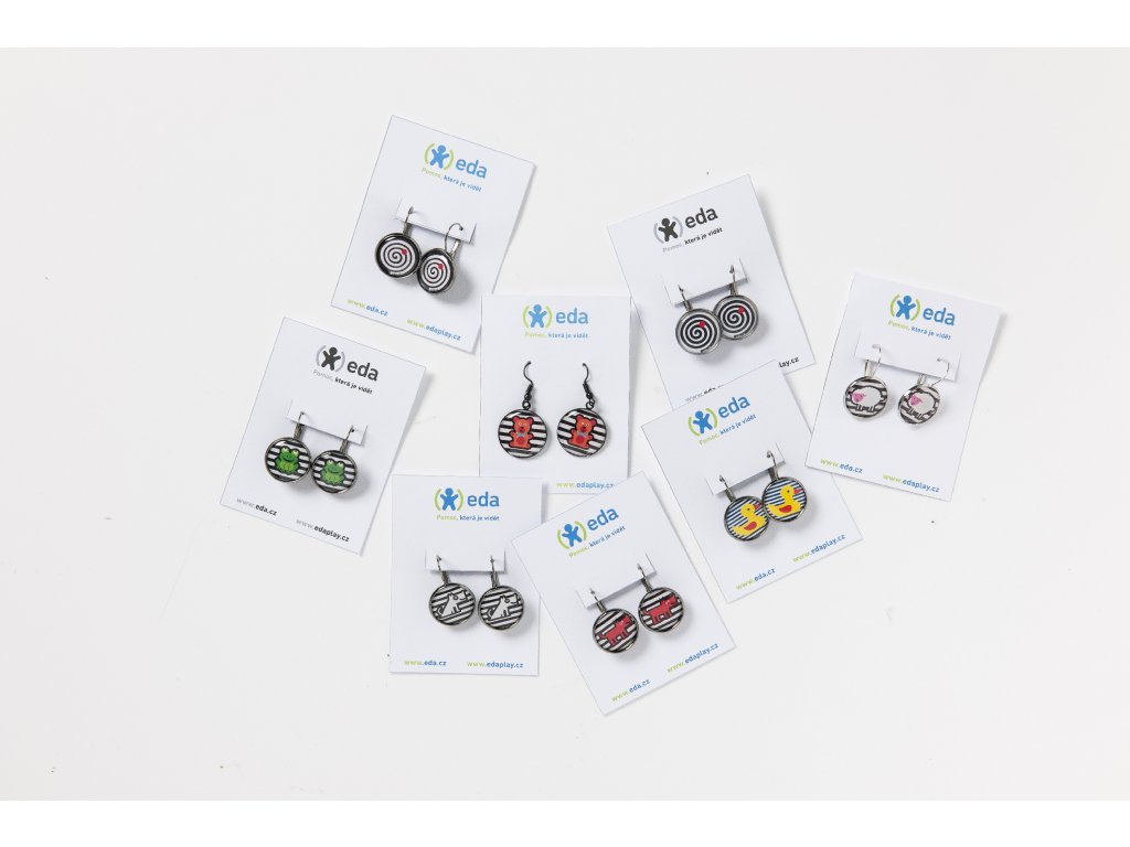 Náušnice jsou vyráběny z materiálu, který je slitinou kovů (z největší části mědi a zinku). Kov je poté patinován povrchovou barvou gunmetal a černým lakem, které jsou antialergenní.