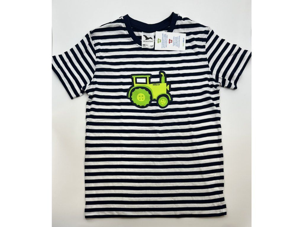 Pruhované dětské tričko s motivem TRAKTOR velikosti 146.